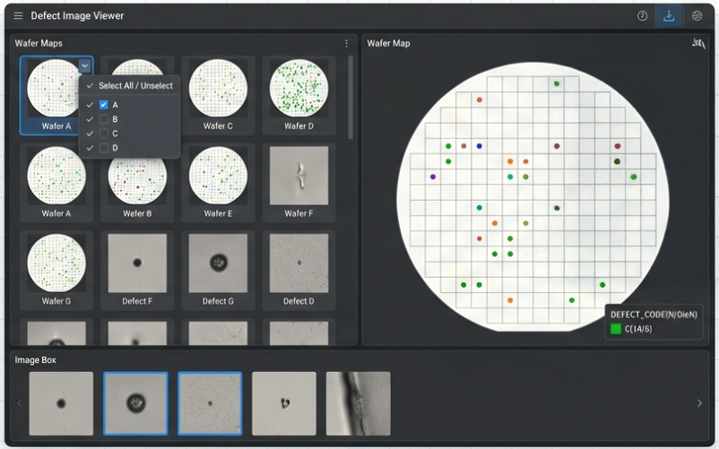 高效能晶圓影像導航,支援極致縮放與點選分析,洞察細微缺陷。