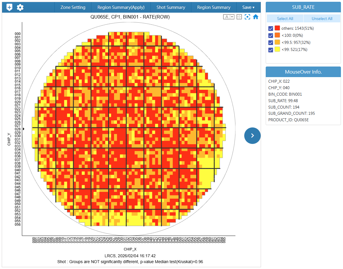 透過自動化統計檢定與特定顏色標示(OOS/OOC),實現『一瞥即辨』的直覺診斷,即可在秒級時間內掌握產線異動。